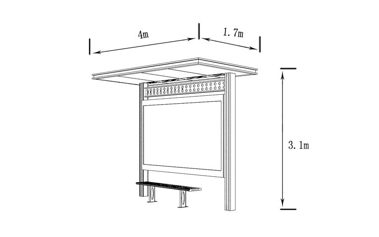 產(chǎn)品外觀 / PRODUCT DETAILS 產(chǎn)品信息 / PRODUCT INFO 【產(chǎn)品名稱】:城市品位候車亭PW15 【產(chǎn)品系列】:城市品位候車亭 【產(chǎn)品型號】:PW15 【產(chǎn)品規(guī)格】:長10800mm 寬1700mm 高2900mm 【產(chǎn)品材質(zhì)】:熱鍍鋅鋼板 【使用年限】:10-15年 【詳情致電】:181-5189-0417、157-5170-8886 備注:產(chǎn)品可根據(jù)用戶需求選用材質(zhì)、顏色及配件,個(gè)性化定制。 1、表面采用靜電噴塑(氟碳烤漆/搪瓷處理) 2、頂棚采用100*100*1.5mm、100*150*2mm鍍鋅管,3mm鍍鋅板激光切割件、1.5mm鍍鋅板焊接骨架,鋪1mm鍍鋅板(10mm陽光板) 3、立柱采用150*150*3mm鍍鋅管 4、箱體采用1.5mm鍍鋅板折彎焊接成型,門框采用全玻鋁合金型材,視窗采用6mm鋼化玻璃 5、照明電器采用LED燈粒 產(chǎn)品尺寸 / PRODUCT SIZE 關(guān)于輝盛 / 為社會分擔(dān)責(zé)任,為客戶創(chuàng)造價(jià)值 宿遷輝盛廣告設(shè)備有限公司是一家集設(shè)計(jì)、研發(fā)、生產(chǎn)為一體的城市公共設(shè)施生產(chǎn)型企業(yè)。主要產(chǎn)品有:候車公交亭、公交站臺、閱報(bào)欄、路名牌、垃圾箱、燈箱等市政設(shè)施系列產(chǎn)品和工程配套設(shè)施系列產(chǎn)品,現(xiàn)有高級技師30多人,高級職稱設(shè)計(jì)人員10人,是一家具有自主開發(fā)和設(shè)計(jì)能力的以公交亭、智能公交為主導(dǎo)的綜合性城市公共設(shè)施制造企業(yè)。為了進(jìn)一步改善生產(chǎn)工藝,提高產(chǎn)品質(zhì)量,公司引進(jìn)了先進(jìn)生產(chǎn)設(shè)備,包括立臥式加工中心,工業(yè)涂裝流水線,CNC車床,線切割機(jī),大型數(shù)控板機(jī),數(shù)控折邊機(jī),數(shù)控沖孔機(jī)床,大型折彎機(jī)等。公司還專門成立了產(chǎn)品研發(fā)部門,現(xiàn)每年自主開發(fā)或應(yīng)客戶要求設(shè)計(jì)推出多款新產(chǎn)品。 榮譽(yù)資質(zhì) / ENTERPRISE HONOR