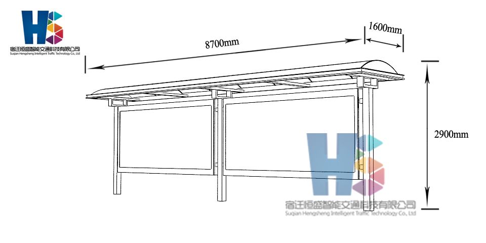 產(chǎn)品外觀 / PRODUCT DETAILS 產(chǎn)品信息 / PRODUCT INFO 【產(chǎn)品名稱】:簡約款式候車亭JY5 【產(chǎn)品系列】:簡約款式候車亭 【產(chǎn)品型號(hào)】:JY5 【產(chǎn)品規(guī)格】:長10800mm 寬1700mm 高2900mm 【產(chǎn)品材質(zhì)】:熱鍍鋅鋼板 【使用年限】:10-15年 【詳情致電】:181-5189-0417、157-5170-8886 備注:產(chǎn)品可根據(jù)用戶需求選用材質(zhì)、顏色及配件,個(gè)性化定制。 1、表面采用靜電噴塑(氟碳烤漆/搪瓷處理) 2、頂棚采用100*100*1.5mm、100*150*2mm鍍鋅管,3mm鍍鋅板激光切割件、1.5mm鍍鋅板焊接骨架,鋪1mm鍍鋅板(10mm陽光板) 3、立柱采用150*150*3mm鍍鋅管 4、箱體采用1.5mm鍍鋅板折彎焊接成型,門框采用全玻鋁合金型材,視窗采用6mm鋼化玻璃 5、照明電器采用LED燈粒 產(chǎn)品尺寸 / PRODUCT SIZE 關(guān)于輝盛 / 為社會(huì)分擔(dān)責(zé)任,為客戶創(chuàng)造價(jià)值 宿遷輝盛廣告設(shè)備有限公司是一家集設(shè)計(jì)、研發(fā)、生產(chǎn)為一體的城市公共設(shè)施生產(chǎn)型企業(yè)。主要產(chǎn)品有:候車公交亭、公交站臺(tái)、閱報(bào)欄、路名牌、垃圾箱、燈箱等市政設(shè)施系列產(chǎn)品和工程配套設(shè)施系列產(chǎn)品,現(xiàn)有高級(jí)技師30多人,高級(jí)職稱設(shè)計(jì)人員10人,是一家具有自主開發(fā)和設(shè)計(jì)能力的以公交亭、智能公交為主導(dǎo)的綜合性城市公共設(shè)施制造企業(yè)。為了進(jìn)一步改善生產(chǎn)工藝,提高產(chǎn)品質(zhì)量,公司引進(jìn)了先進(jìn)生產(chǎn)設(shè)備,包括立臥式加工中心,工業(yè)涂裝流水線,CNC車床,線切割機(jī),大型數(shù)控板機(jī),數(shù)控折邊機(jī),數(shù)控沖孔機(jī)床,大型折彎機(jī)等。公司還專門成立了產(chǎn)品研發(fā)部門,現(xiàn)每年自主開發(fā)或應(yīng)客戶要求設(shè)計(jì)推出多款新產(chǎn)品。 榮譽(yù)資質(zhì) / ENTERPRISE HONOR