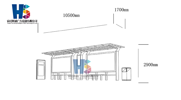 產(chǎn)品外觀 / PRODUCT DETAILS 產(chǎn)品信息 / PRODUCT INFO 【產(chǎn)品名稱】:新款候車亭HS69 【產(chǎn)品系列】:新款候車亭 【產(chǎn)品型號】:HS69 【產(chǎn)品規(guī)格】:長10500mm 寬1700mm 高2900mm 【產(chǎn)品材質(zhì)】:熱鍍鋅鋼板 【使用年限】:10-15年 【詳情致電】:181-5189-0417、157-5170-8886 備注:產(chǎn)品可根據(jù)用戶需求選用材質(zhì)、顏色及配件,個性化定制。 1、表面采用靜電噴塑(氟碳烤漆/搪瓷處理) 2、頂棚采用100*100*1.5mm、100*150*2mm鍍鋅管,3mm鍍鋅板激光切割件、1.5mm鍍鋅板焊接骨架,鋪1mm鍍鋅板(10mm陽光板) 3、立柱采用150*150*3mm鍍鋅管 4、箱體采用1.5mm鍍鋅板折彎焊接成型,門框采用全玻鋁合金型材,視窗采用6mm鋼化玻璃 5、照明電器采用LED燈粒 產(chǎn)品尺寸 / PRODUCT SIZE 關(guān)于輝盛 / 為社會分擔(dān)責(zé)任,為客戶創(chuàng)造價值 宿遷輝盛廣告設(shè)備有限公司是一家集設(shè)計、研發(fā)、生產(chǎn)為一體的城市公共設(shè)施生產(chǎn)型企業(yè)。主要產(chǎn)品有:候車公交亭、公交站臺、閱報欄、路名牌、垃圾箱、燈箱等市政設(shè)施系列產(chǎn)品和工程配套設(shè)施系列產(chǎn)品,現(xiàn)有高級技師30多人,高級職稱設(shè)計人員10人,是一家具有自主開發(fā)和設(shè)計能力的以公交亭、智能公交為主導(dǎo)的綜合性城市公共設(shè)施制造企業(yè)。為了進(jìn)一步改善生產(chǎn)工藝,提高產(chǎn)品質(zhì)量,公司引進(jìn)了先進(jìn)生產(chǎn)設(shè)備,包括立臥式加工中心,工業(yè)涂裝流水線,CNC車床,線切割機,大型數(shù)控板機,數(shù)控折邊機,數(shù)控沖孔機床,大型折彎機等。公司還專門成立了產(chǎn)品研發(fā)部門,現(xiàn)每年自主開發(fā)或應(yīng)客戶要求設(shè)計推出多款新產(chǎn)品。 榮譽資質(zhì) / ENTERPRISE HONOR