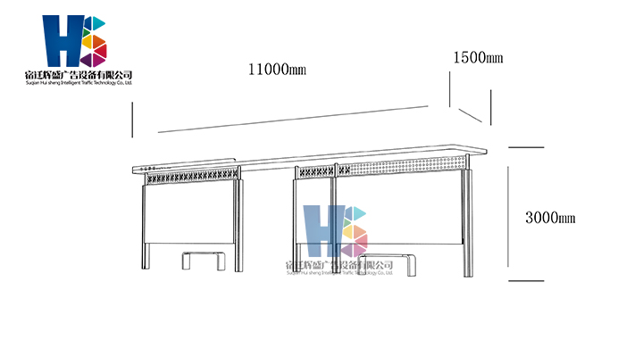 產(chǎn)品外觀 / PRODUCT DETAILS 產(chǎn)品信息 / PRODUCT INFO 【產(chǎn)品名稱】:新款候車亭HS59 【產(chǎn)品系列】:新款候車亭 【產(chǎn)品型號】:HS59 【產(chǎn)品規(guī)格】:長11000mm 寬1500mm 高3000mm 【產(chǎn)品材質】:熱鍍鋅鋼板 【使用年限】:10-15年 【詳情致電】:181-5189-0417、157-5170-8886 備注:產(chǎn)品可根據(jù)用戶需求選用材質、顏色及配件,個性化定制。 1、表面采用靜電噴塑(氟碳烤漆/搪瓷處理) 2、頂棚采用100*100*1.5mm、100*150*2mm鍍鋅管,3mm鍍鋅板激光切割件、1.5mm鍍鋅板焊接骨架,鋪1mm鍍鋅板(10mm陽光板) 3、立柱采用150*150*3mm鍍鋅管 4、箱體采用1.5mm鍍鋅板折彎焊接成型,門框采用全玻鋁合金型材,視窗采用6mm鋼化玻璃 5、照明電器采用LED燈粒 產(chǎn)品尺寸 / PRODUCT SIZE 關于輝盛 / 為社會分擔責任,為客戶創(chuàng)造價值 宿遷輝盛廣告設備有限公司是一家集設計、研發(fā)、生產(chǎn)為一體的城市公共設施生產(chǎn)型企業(yè)。主要產(chǎn)品有:候車公交亭、公交站臺、閱報欄、路名牌、垃圾箱、燈箱等市政設施系列產(chǎn)品和工程配套設施系列產(chǎn)品,現(xiàn)有高級技師30多人,高級職稱設計人員10人,是一家具有自主開發(fā)和設計能力的以公交亭、智能公交為主導的綜合性城市公共設施制造企業(yè)。為了進一步改善生產(chǎn)工藝,提高產(chǎn)品質量,公司引進了先進生產(chǎn)設備,包括立臥式加工中心,工業(yè)涂裝流水線,CNC車床,線切割機,大型數(shù)控板機,數(shù)控折邊機,數(shù)控沖孔機床,大型折彎機等。公司還專門成立了產(chǎn)品研發(fā)部門,現(xiàn)每年自主開發(fā)或應客戶要求設計推出多款新產(chǎn)品。 榮譽資質 / ENTERPRISE HONOR
