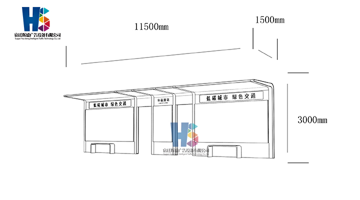 產(chǎn)品外觀 / PRODUCT DETAILS 產(chǎn)品信息 / PRODUCT INFO 【產(chǎn)品名稱】:新款候車亭HS58 【產(chǎn)品系列】:新款候車亭 【產(chǎn)品型號(hào)】:HS58 【產(chǎn)品規(guī)格】:長(zhǎng)11500mm 寬1500mm 高3000mm 【產(chǎn)品材質(zhì)】:熱鍍鋅鋼板 【使用年限】:10-15年 【詳情致電】:181-5189-0417、157-5170-8886 備注:產(chǎn)品可根據(jù)用戶需求選用材質(zhì)、顏色及配件,個(gè)性化定制。 1、表面采用靜電噴塑(氟碳烤漆/搪瓷處理) 2、頂棚采用100*100*1.5mm、100*150*2mm鍍鋅管,3mm鍍鋅板激光切割件、1.5mm鍍鋅板焊接骨架,鋪1mm鍍鋅板(10mm陽(yáng)光板) 3、立柱采用150*150*3mm鍍鋅管 4、箱體采用1.5mm鍍鋅板折彎焊接成型,門框采用全玻鋁合金型材,視窗采用6mm鋼化玻璃 5、照明電器采用LED燈粒 產(chǎn)品尺寸 / PRODUCT SIZE 關(guān)于輝盛 / 為社會(huì)分擔(dān)責(zé)任,為客戶創(chuàng)造價(jià)值 宿遷輝盛廣告設(shè)備有限公司是一家集設(shè)計(jì)、研發(fā)、生產(chǎn)為一體的城市公共設(shè)施生產(chǎn)型企業(yè)。主要產(chǎn)品有:候車公交亭、公交站臺(tái)、閱報(bào)欄、路名牌、垃圾箱、燈箱等市政設(shè)施系列產(chǎn)品和工程配套設(shè)施系列產(chǎn)品,現(xiàn)有高級(jí)技師30多人,高級(jí)職稱設(shè)計(jì)人員10人,是一家具有自主開發(fā)和設(shè)計(jì)能力的以公交亭、智能公交為主導(dǎo)的綜合性城市公共設(shè)施制造企業(yè)。為了進(jìn)一步改善生產(chǎn)工藝,提高產(chǎn)品質(zhì)量,公司引進(jìn)了先進(jìn)生產(chǎn)設(shè)備,包括立臥式加工中心,工業(yè)涂裝流水線,CNC車床,線切割機(jī),大型數(shù)控板機(jī),數(shù)控折邊機(jī),數(shù)控沖孔機(jī)床,大型折彎?rùn)C(jī)等。公司還專門成立了產(chǎn)品研發(fā)部門,現(xiàn)每年自主開發(fā)或應(yīng)客戶要求設(shè)計(jì)推出多款新產(chǎn)品。 榮譽(yù)資質(zhì) / ENTERPRISE HONOR