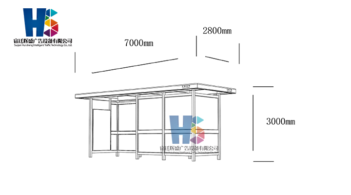 產(chǎn)品外觀 / PRODUCT DETAILS 產(chǎn)品信息 / PRODUCT INFO 【產(chǎn)品名稱】:新款候車(chē)亭HS49 【產(chǎn)品系列】:新款候車(chē)亭 【產(chǎn)品型號(hào)】:HS49 【產(chǎn)品規(guī)格】:長(zhǎng)7000mm 寬2800mm 高3000mm 【產(chǎn)品材質(zhì)】:熱鍍鋅鋼板 【使用年限】:10-15年 【詳情致電】:181-5189-0417、157-5170-8886 備注:產(chǎn)品可根據(jù)用戶需求選用材質(zhì)、顏色及配件,個(gè)性化定制。 1、表面采用靜電噴塑(氟碳烤漆/搪瓷處理) 2、頂棚采用100*100*1.5mm、100*150*2mm鍍鋅管,3mm鍍鋅板激光切割件、1.5mm鍍鋅板焊接骨架,鋪1mm鍍鋅板(10mm陽(yáng)光板) 3、立柱采用150*150*3mm鍍鋅管 4、箱體采用1.5mm鍍鋅板折彎焊接成型,門(mén)框采用全玻鋁合金型材,視窗采用6mm鋼化玻璃 5、照明電器采用LED燈粒 產(chǎn)品尺寸 / PRODUCT SIZE 關(guān)于輝盛 / 為社會(huì)分擔(dān)責(zé)任,為客戶創(chuàng)造價(jià)值 宿遷輝盛廣告設(shè)備有限公司是一家集設(shè)計(jì)、研發(fā)、生產(chǎn)為一體的城市公共設(shè)施生產(chǎn)型企業(yè)。主要產(chǎn)品有:候車(chē)公交亭、公交站臺(tái)、閱報(bào)欄、路名牌、垃圾箱、燈箱等市政設(shè)施系列產(chǎn)品和工程配套設(shè)施系列產(chǎn)品,現(xiàn)有高級(jí)技師30多人,高級(jí)職稱設(shè)計(jì)人員10人,是一家具有自主開(kāi)發(fā)和設(shè)計(jì)能力的以公交亭、智能公交為主導(dǎo)的綜合性城市公共設(shè)施制造企業(yè)。為了進(jìn)一步改善生產(chǎn)工藝,提高產(chǎn)品質(zhì)量,公司引進(jìn)了先進(jìn)生產(chǎn)設(shè)備,包括立臥式加工中心,工業(yè)涂裝流水線,CNC車(chē)床,線切割機(jī),大型數(shù)控板機(jī),數(shù)控折邊機(jī),數(shù)控沖孔機(jī)床,大型折彎?rùn)C(jī)等。公司還專門(mén)成立了產(chǎn)品研發(fā)部門(mén),現(xiàn)每年自主開(kāi)發(fā)或應(yīng)客戶要求設(shè)計(jì)推出多款新產(chǎn)品。 榮譽(yù)資質(zhì) / ENTERPRISE HONOR