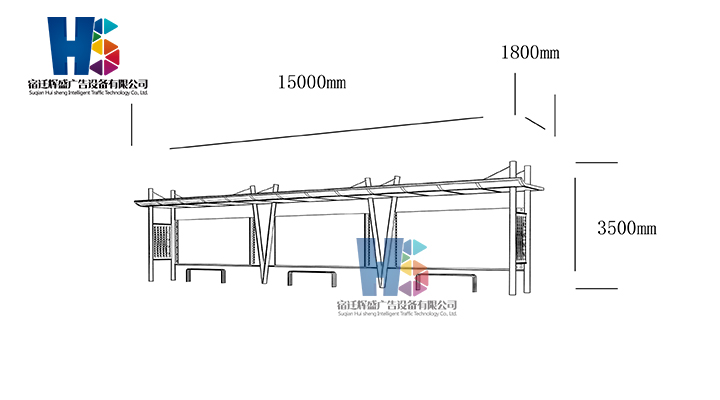 產(chǎn)品外觀 / PRODUCT DETAILS 產(chǎn)品信息 / PRODUCT INFO 【產(chǎn)品名稱】:新款候車亭HS42 【產(chǎn)品系列】:新款候車亭 【產(chǎn)品型號】:HS42 【產(chǎn)品規(guī)格】:長15000mm 寬1800mm 高3500mm 【產(chǎn)品材質(zhì)】:熱鍍鋅鋼板 【使用年限】:10-15年 【詳情致電】:181-5189-0417、157-5170-8886 備注:產(chǎn)品可根據(jù)用戶需求選用材質(zhì)、顏色及配件,個性化定制。 1、表面采用靜電噴塑(氟碳烤漆/搪瓷處理) 2、頂棚采用100*100*1.5mm、100*150*2mm鍍鋅管,3mm鍍鋅板激光切割件、1.5mm鍍鋅板焊接骨架,鋪1mm鍍鋅板(10mm陽光板) 3、立柱采用150*150*3mm鍍鋅管 4、箱體采用1.5mm鍍鋅板折彎焊接成型,門框采用全玻鋁合金型材,視窗采用6mm鋼化玻璃 5、照明電器采用LED燈粒 產(chǎn)品尺寸 / PRODUCT SIZE 關(guān)于輝盛 / 為社會分擔(dān)責(zé)任,為客戶創(chuàng)造價值 宿遷輝盛廣告設(shè)備有限公司是一家集設(shè)計、研發(fā)、生產(chǎn)為一體的城市公共設(shè)施生產(chǎn)型企業(yè)。主要產(chǎn)品有:候車公交亭、公交站臺、閱報欄、路名牌、垃圾箱、燈箱等市政設(shè)施系列產(chǎn)品和工程配套設(shè)施系列產(chǎn)品,現(xiàn)有高級技師30多人,高級職稱設(shè)計人員10人,是一家具有自主開發(fā)和設(shè)計能力的以公交亭、智能公交為主導(dǎo)的綜合性城市公共設(shè)施制造企業(yè)。為了進(jìn)一步改善生產(chǎn)工藝,提高產(chǎn)品質(zhì)量,公司引進(jìn)了先進(jìn)生產(chǎn)設(shè)備,包括立臥式加工中心,工業(yè)涂裝流水線,CNC車床,線切割機(jī),大型數(shù)控板機(jī),數(shù)控折邊機(jī),數(shù)控沖孔機(jī)床,大型折彎機(jī)等。公司還專門成立了產(chǎn)品研發(fā)部門,現(xiàn)每年自主開發(fā)或應(yīng)客戶要求設(shè)計推出多款新產(chǎn)品。 榮譽(yù)資質(zhì) / ENTERPRISE HONOR