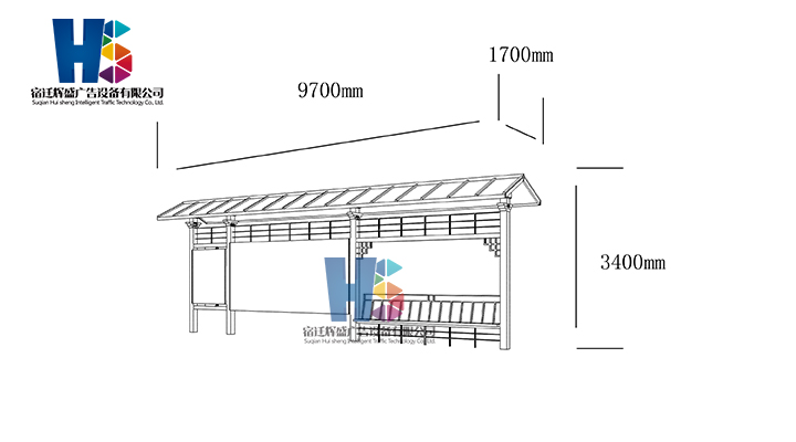 產(chǎn)品外觀 / PRODUCT DETAILS 產(chǎn)品信息 / PRODUCT INFO 【產(chǎn)品名稱】:新款候車亭HS30 【產(chǎn)品系列】:新款候車亭 【產(chǎn)品型號(hào)】:HS30 【產(chǎn)品規(guī)格】:長(zhǎng)9700mm 寬1700mm 高3400mm 【產(chǎn)品材質(zhì)】:熱鍍鋅鋼板 【使用年限】:10-15年 【詳情致電】:181-5189-0417、157-5170-8886 備注:產(chǎn)品可根據(jù)用戶需求選用材質(zhì)、顏色及配件,個(gè)性化定制。 1、表面采用靜電噴塑(氟碳烤漆/搪瓷處理) 2、頂棚采用100*100*1.5mm、100*150*2mm鍍鋅管,3mm鍍鋅板激光切割件、1.5mm鍍鋅板焊接骨架,鋪1mm鍍鋅板(10mm陽光板) 3、立柱采用150*150*3mm鍍鋅管 4、箱體采用1.5mm鍍鋅板折彎焊接成型,門框采用全玻鋁合金型材,視窗采用6mm鋼化玻璃 5、照明電器采用LED燈粒 產(chǎn)品尺寸 / PRODUCT SIZE 關(guān)于輝盛 / 為社會(huì)分擔(dān)責(zé)任,為客戶創(chuàng)造價(jià)值 宿遷輝盛廣告設(shè)備有限公司是一家集設(shè)計(jì)、研發(fā)、生產(chǎn)為一體的城市公共設(shè)施生產(chǎn)型企業(yè)。主要產(chǎn)品有:候車公交亭、公交站臺(tái)、閱報(bào)欄、路名牌、垃圾箱、燈箱等市政設(shè)施系列產(chǎn)品和工程配套設(shè)施系列產(chǎn)品,現(xiàn)有高級(jí)技師30多人,高級(jí)職稱設(shè)計(jì)人員10人,是一家具有自主開發(fā)和設(shè)計(jì)能力的以公交亭、智能公交為主導(dǎo)的綜合性城市公共設(shè)施制造企業(yè)。為了進(jìn)一步改善生產(chǎn)工藝,提高產(chǎn)品質(zhì)量,公司引進(jìn)了先進(jìn)生產(chǎn)設(shè)備,包括立臥式加工中心,工業(yè)涂裝流水線,CNC車床,線切割機(jī),大型數(shù)控板機(jī),數(shù)控折邊機(jī),數(shù)控沖孔機(jī)床,大型折彎?rùn)C(jī)等。公司還專門成立了產(chǎn)品研發(fā)部門,現(xiàn)每年自主開發(fā)或應(yīng)客戶要求設(shè)計(jì)推出多款新產(chǎn)品。 榮譽(yù)資質(zhì) / ENTERPRISE HONOR