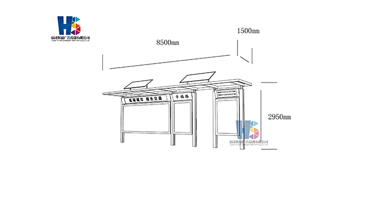 產(chǎn)品外觀 / PRODUCT DETAILS 產(chǎn)品信息 / PRODUCT INFO 【產(chǎn)品名稱】:新款候車亭HS2 【產(chǎn)品系列】:新款候車亭 【產(chǎn)品型號】:HS2 【產(chǎn)品規(guī)格】:長8500mm 寬1500mm 高2950mm 【產(chǎn)品材質(zhì)】:熱鍍鋅鋼板 【使用年限】:10-15年 【詳情致電】:181-5189-0417、157-5170-8886 備注:產(chǎn)品可根據(jù)用戶需求選用材質(zhì)、顏色及配件,個性化定制。 1、表面采用靜電噴塑(氟碳烤漆/搪瓷處理) 2、頂棚采用100*100*1.5mm、100*150*2mm鍍鋅管,3mm鍍鋅板激光切割件、1.5mm鍍鋅板焊接骨架,鋪1mm鍍鋅板(10mm陽光板) 3、立柱采用150*150*3mm鍍鋅管 4、箱體采用1.5mm鍍鋅板折彎焊接成型,門框采用全玻鋁合金型材,視窗采用6mm鋼化玻璃 5、照明電器采用LED燈粒 產(chǎn)品尺寸 / PRODUCT SIZE 關(guān)于輝盛 / 為社會分擔(dān)責(zé)任,為客戶創(chuàng)造價值 宿遷輝盛廣告設(shè)備有限公司是一家集設(shè)計、研發(fā)、生產(chǎn)為一體的城市公共設(shè)施生產(chǎn)型企業(yè)。主要產(chǎn)品有:候車公交亭、公交站臺、閱報欄、路名牌、垃圾箱、燈箱等市政設(shè)施系列產(chǎn)品和工程配套設(shè)施系列產(chǎn)品,現(xiàn)有高級技師30多人,高級職稱設(shè)計人員10人,是一家具有自主開發(fā)和設(shè)計能力的以公交亭、智能公交為主導(dǎo)的綜合性城市公共設(shè)施制造企業(yè)。為了進一步改善生產(chǎn)工藝,提高產(chǎn)品質(zhì)量,公司引進了先進生產(chǎn)設(shè)備,包括立臥式加工中心,工業(yè)涂裝流水線,CNC車床,線切割機,大型數(shù)控板機,數(shù)控折邊機,數(shù)控沖孔機床,大型折彎機等。公司還專門成立了產(chǎn)品研發(fā)部門,現(xiàn)每年自主開發(fā)或應(yīng)客戶要求設(shè)計推出多款新產(chǎn)品。 榮譽資質(zhì) / ENTERPRISE HONOR