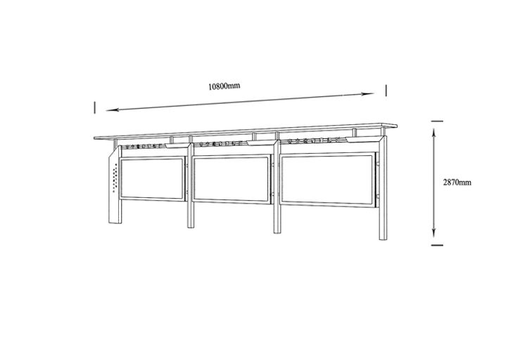 產(chǎn)品外觀 / PRODUCT DETAILS 產(chǎn)品信息 / PRODUCT INFO 【產(chǎn)品名稱】:宣傳欄XCL2-1 【產(chǎn)品系列】:宣傳欄 【產(chǎn)品型號(hào)】:XCL2-1 【產(chǎn)品規(guī)格】:長(zhǎng)10800mm 高2870mm 【產(chǎn)品材質(zhì)】:熱鍍鋅鋼板 【使用年限】:10-15年 【詳情致電】:181-5189-0417、157-5170-8886 備注:產(chǎn)品可根據(jù)用戶需求選用材質(zhì)、顏色及配件,個(gè)性化定制。 1、表面采用靜電噴塑(氟碳烤漆/搪瓷處理) 2、頂棚采用100*100*1.5mm、100*150*2mm鍍鋅管,3mm鍍鋅板激光切割件、1.5mm鍍鋅板焊接骨架,鋪1mm鍍鋅板(10mm陽(yáng)光板) 3、立柱采用150*150*3mm鍍鋅管 4、箱體采用1.5mm鍍鋅板折彎焊接成型,門框采用全玻鋁合金型材,視窗采用6mm鋼化玻璃 5、照明電器采用LED燈粒 產(chǎn)品尺寸 / PRODUCT SIZE 關(guān)于輝盛 / 為社會(huì)分擔(dān)責(zé)任,為客戶創(chuàng)造價(jià)值 宿遷輝盛廣告設(shè)備有限公司是一家集設(shè)計(jì)、研發(fā)、生產(chǎn)為一體的城市公共設(shè)施生產(chǎn)型企業(yè)。主要產(chǎn)品有:候車公交亭、公交站臺(tái)、閱報(bào)欄、路名牌、垃圾箱、燈箱等市政設(shè)施系列產(chǎn)品和工程配套設(shè)施系列產(chǎn)品,現(xiàn)有高級(jí)技師30多人,高級(jí)職稱設(shè)計(jì)人員10人,是一家具有自主開(kāi)發(fā)和設(shè)計(jì)能力的以公交亭、智能公交為主導(dǎo)的綜合性城市公共設(shè)施制造企業(yè)。為了進(jìn)一步改善生產(chǎn)工藝,提高產(chǎn)品質(zhì)量,公司引進(jìn)了先進(jìn)生產(chǎn)設(shè)備,包括立臥式加工中心,工業(yè)涂裝流水線,CNC車床,線切割機(jī),大型數(shù)控板機(jī),數(shù)控折邊機(jī),數(shù)控沖孔機(jī)床,大型折彎?rùn)C(jī)等。公司還專門成立了產(chǎn)品研發(fā)部門,現(xiàn)每年自主開(kāi)發(fā)或應(yīng)客戶要求設(shè)計(jì)推出多款新產(chǎn)品。 榮譽(yù)資質(zhì) / ENTERPRISE HONOR